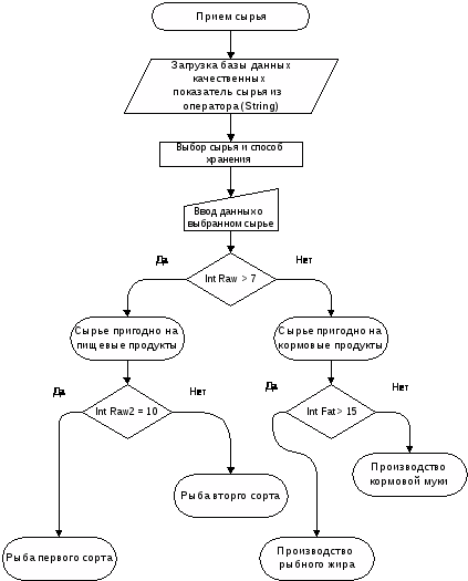 Для наглядности моделирования приема сырья приведен алгоритм построения программы рис.p.1.3.
