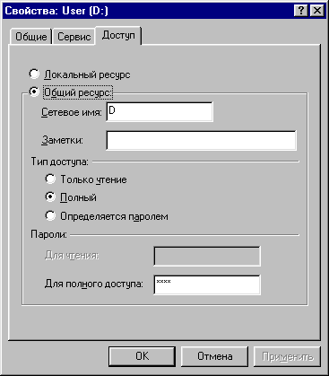 Для дисков и папок могут быть заданы два режима доступа (см. рис. 22а): Полный или Только для чтения. Каждый из ресурсов (диск или папка) может также открываться в режиме, задаваемом паролем.