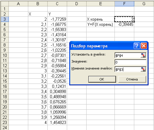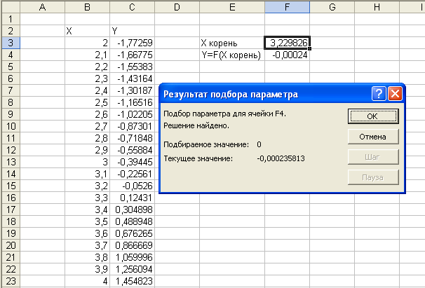 Задание 3 Вычисление корней нелинейного (трансцендентного) уравнения, используя инструмент Подбор параметра.