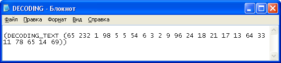 (PRINT (LIST 'DECODING_TEXT DECODING_TEXT) OUTPUT)