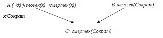 Для любой пары предложений C, D S предложение C называется подслучаем предложения D, если существует такая подстановка , что C D. Например: