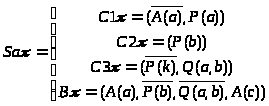 C = {A(a, f(k)), A(b, f(k)), A(a, f(a)}.