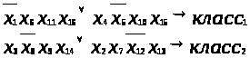 Пусть имеется 16 объектов. Объекты с номерами 1 – 8 относятся к первому классу, 9 – 16 ко второму классу. Далее приводится таблица со значениями признаков для этих объектов.