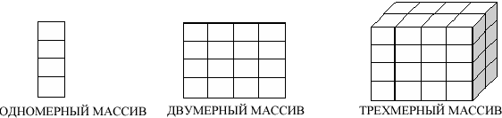 Рис. Изображение одно-, двух- и трехмерных массивов.