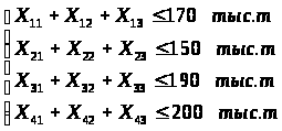 Суммарное количество пере перевозимой железной руды из каждого карьера не должно превышать возможности обогатительных фабрик по обогащению руды.