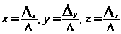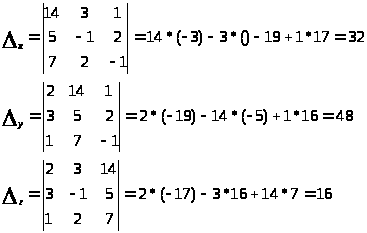 Підставивши знайдені визначники в формули Крамера будемо мати:
