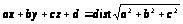 на основі рівняння площини Ax+By+Cz+D=0, квадрат відстані від вершини v [xv,yv,zv] до цієї площини визначається як: