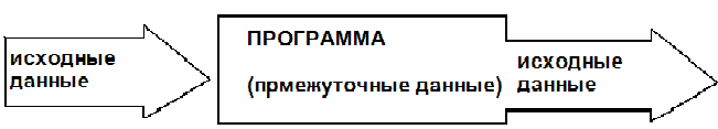 Компьютер работает с информацией. Информация, обрабатываемой компьютерной программой, называется данными. Величина — это шильный информационный объект, отдельная единица данных. Команды II компьютерной программе определяют действия, выполняемые над величинами. По отношению к программе данные делятся на исходные, результаты (окончательные данные) и промежуточные данные, которые получаются в процессе вычислений (рис. 2).