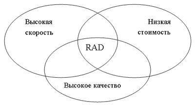 Одним из возможных подходов к разработке ПО в рамках спиральной модели ЖЦ является получившая в последнее время широкое распространение методология быстрой разработки приложений RAD (Rapid Application Development). Под этим термином обычно понимается процесс разработки ПО, содержащий 3 элемента:
