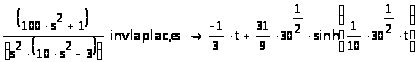 Преобразование Лапласа можно выполнить, используя блок символьных вычислений MathCAD. Этот же блок позволяет выполнить и обратное преобразование Лапласа, в соответствии с соотношением: