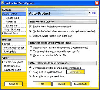 Пакет программ Norton Antivirus 2005 позволяет выполнять следующие виды защиты компьютера.