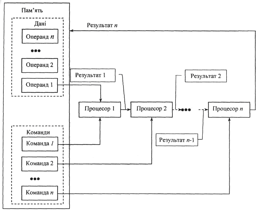 Рис. 1. Оброблення даних у обчислювальної системі конвеєрної (MISD) архітектури.