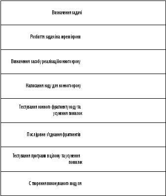 Перші два етапи називаються компіляцією, тобто утворення певного кістяку, за якими буде будуватись вихідний програмний код. Третій етап називається трансляцією, а останній – компоновкою.