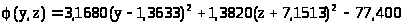 Получили уравнение эллипса с центром в точке (y = 1,3633; z = - 7,1513), причём линии симметрии эллипса наклонены на угол = - 0,55375 радиан относительно начальной системы координат х>1>х>2>.