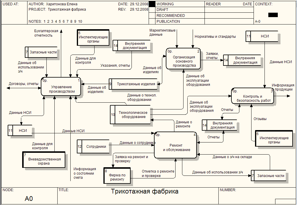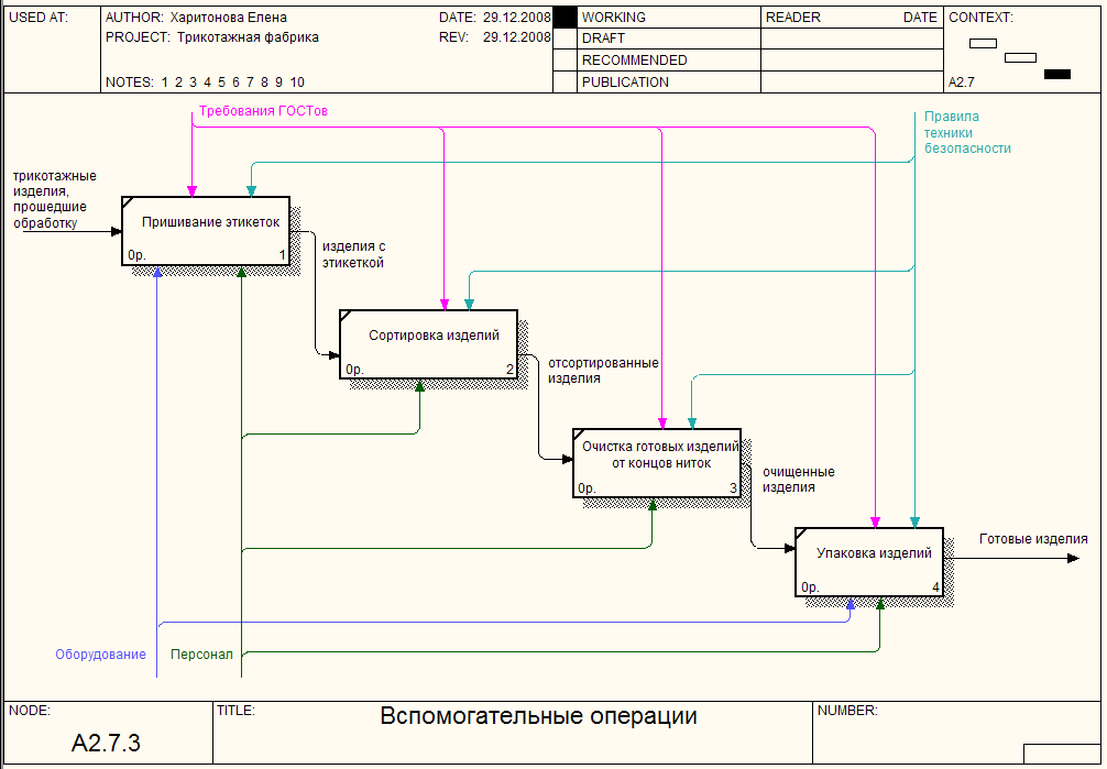 2.3 Описание вспомогательных бизнес-процессов трикотажной фабрики (на основе диаграммы с методологией IDEF0)