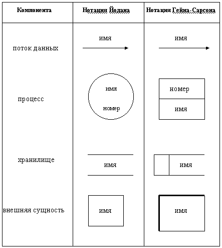 Рис. 3. Основные символы диаграммы потоков данных
