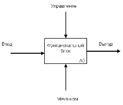 Необходимо отметить, что любой функциональный блок по требованиям стандарта должен иметь, по крайней мере, одну управляющую интерфейсную дугу и одну исходящую. Это и понятно – каждый процесс должен происходить по каким-то правилам (отображаемым управляющей дугой) и должен выдавать некоторый результат (выходящая дуга), иначе его рассмотрение не имеет никакого смысла.