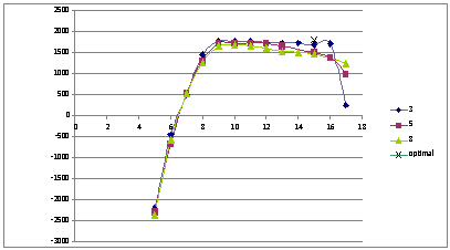 Максимальное значение критерия эффективности (V=1712,65) было достигнуто при TAU = 16, а величина задела равна 3.