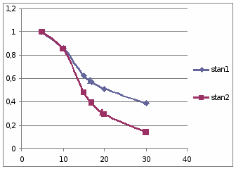 Рис.8. зависимость коэффициента использования станков от интервала поступления.