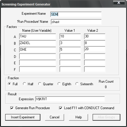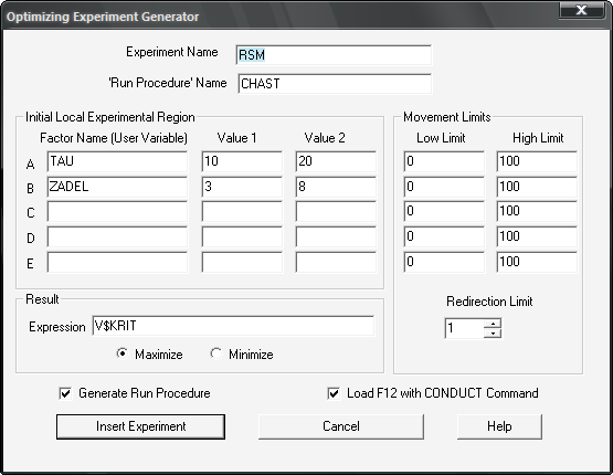 Решение найденное экспериментальным путем с помощью многочисленных прогонов (V=1812,81, TAU=15, ZADEL=6) оказалось близким со значением (V=1712,64, TAU=16, ZADEL=3) найденным программой после проведения оптимизирующего эксперимента, но не точное.