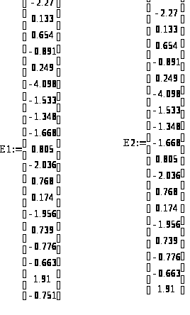 Для того, чтобы получить матрицу Е1 нужно скопировать значения из матрицы Е с 1 по 19; для получения матрицы Е2 мы скопируем значения из матрицы Е, начиная с 0 и заканчивая 18 значением, при этом получим: