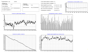 Кол-во программ-клиентов: 10, Кол-во программистов: 3, Доля от общей области данных (ООД) в одном запросе клиента: 1E-5, Начальное кол-во ошибок: 250, Коэффициент сложности сервера: 2, Интенсивность потока обращений клиента к серверу: 2500 (1/сутки), Интенсивность потока исправления ошибки: 1 (1/сутки), Интенсивность внесения ошибки при исправлении: 0,1 (1/сутки), Шаг итерации: 0,0004, Кол-во итераций: 250000, Общее время розыгрыша: 100 (сутки); Число розыгрышей:10