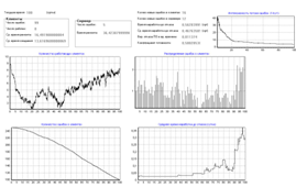 Кол-во программ-клиентов: 10, Кол-во программистов: 10, Доля от общей области данных (ООД) в одном запросе клиента: 1E-5, Начальное кол-во ошибок: 250, Коэффициент сложности сервера: 2, Интенсивность потока обращений клиента к серверу: 250 (1/сутки), Интенсивность потока исправления ошибки: 1 (1/сутки), Интенсивность внесения ошибки при исправлении: 0,7 (1/сутки), Шаг итерации: 0,002, Кол-во итераций: 50000, Общее время розыгрыша: 100 (сутки); Число розыгрышей:30