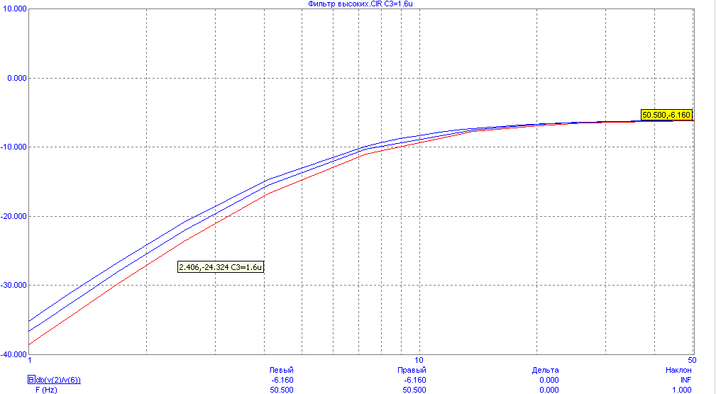 Рисунок 4.5 – Вплив конденсатору С3 на ФВЧ