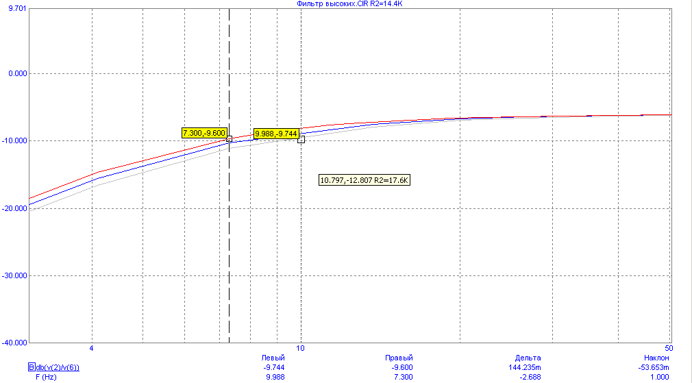 Рисунок 4.8 – Вплив резистору R7на ФНЧ