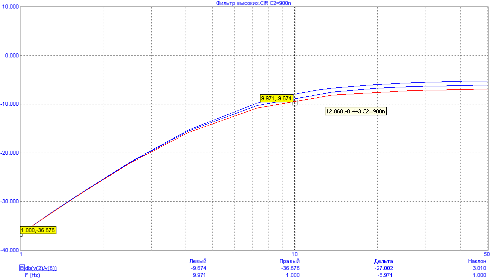 Рисунок 4.6 – Вплив конденсатору С2 на ФВЧ