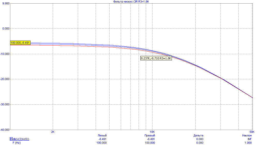Рисунок 4.7 – Вплив резистору R6 на ФНЧ