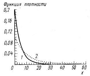 Рис. 3. Функція щільності f(x) експоненційного розподілу:
