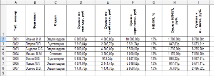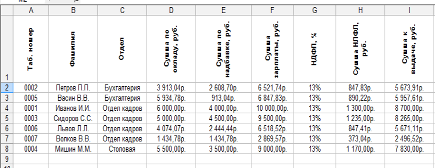 Рис.7 Таблица «Ведомости зарплаты».