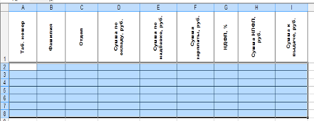 На рабочем листе Ведомости зарплаты MS Excel создать таблицу: