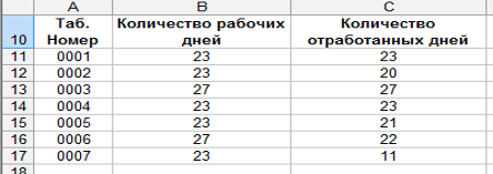 Рис.3 Таблица «Данные об учете рабочего времени»