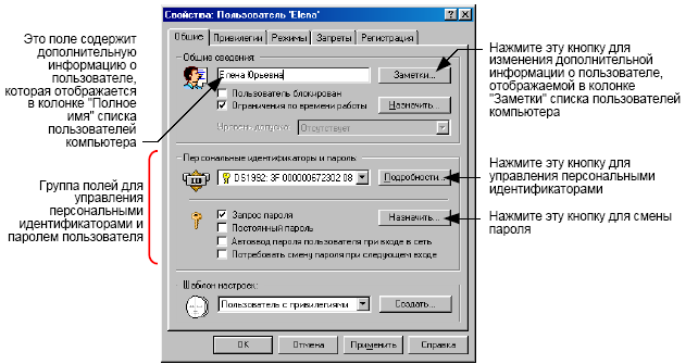 Настройка параметров, связанных с аутентификацией пользователя на этапе входа в систему, выполняется в окне управления свойствами пользователя.