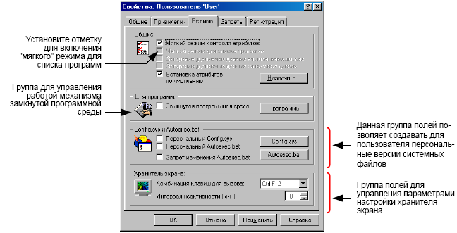 Установить отметку в поле «Персональный Autoexec.bat» или «Персональный Config.sys», чтобы назначить пользователю персональные версии системных файлов.