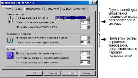 Вызвать на экран окно управления общими параметрами Secret Net.