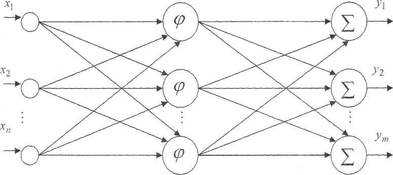 Рис. 1. Сеть с радиальными базисными функциями