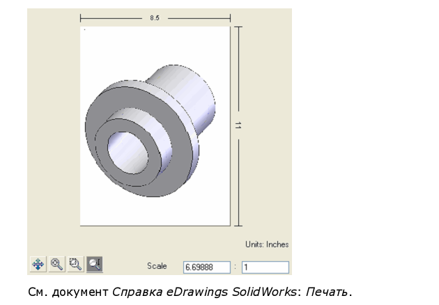 В режиме предварительного просмотра Drawings можно увидеть как чертеж или модель будут выглядеть на печати и сэкономить при этом время и бумагу. Кроме того в этом режиме можно просматривать несколько листов сразу. В диалоговом окне Печать следует указать часть чертежа для печати Чтобы воспользоваться функциями увеличения и перемещения для более точного выбора отметьте параметр Текущее изображение на экране