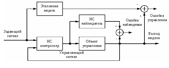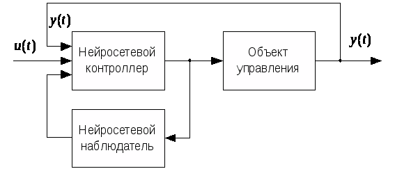 При этом обучение самого нейроконтроллера непосредственно по входным данным объекта может быть произведено с помощью схемы, представленной на рисунке 1.6 с применением наиболее распространенного алгоритма.
