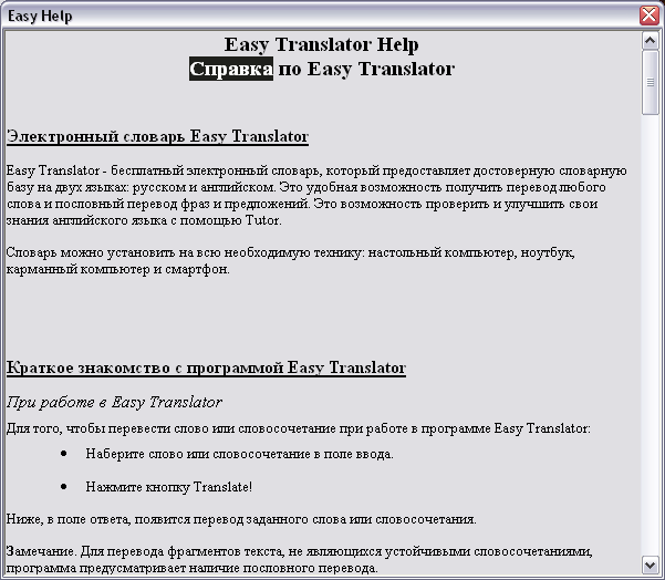 Для возврата в Easy Translator достаточно нажать кнопку Back… или кнопку закрытия окна.