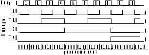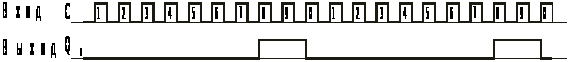 На рис.13.8 схематически изображен декадный счетчик, а на рис.13.9 приведены временные диаграммы для его синхронизирующего входа C и выхода Q>D>, соответствующего двоичному разряду восьмерок.