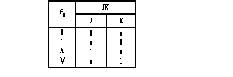 Определив для каждого из значений F>Q> соответствующие ему значения входных переменных J и K, получим словарь переходов JK триггера (табл. 13.5).