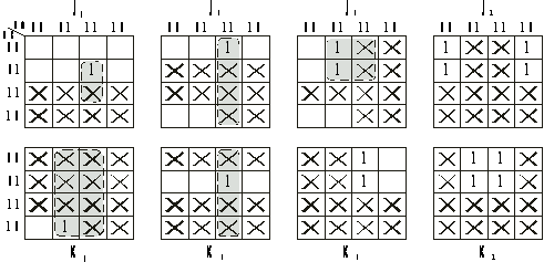 Рис. 13.13. Карты Карно для входов J и K триггеров
