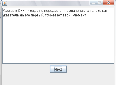 String T0="Оцените утверждение : массив в С++ никогда не передается по значению";