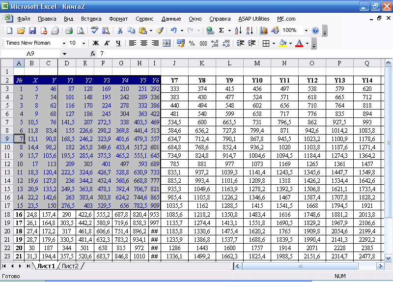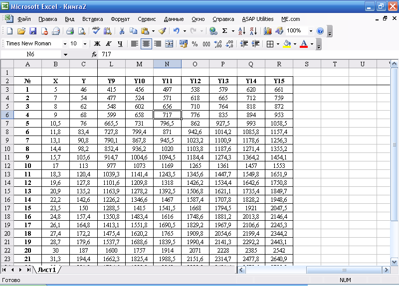Столбцы №, Х, Y, Y1…Y15. Все столбцы не помещаются на экране, приходится постоянно листать вправо и тем самым не видно столбец "№". Это может привести к неправильному заполнению таблицы и повлечь за собой ошибки. Воспользуемся командой "Закрепить области" (см. рис.3).