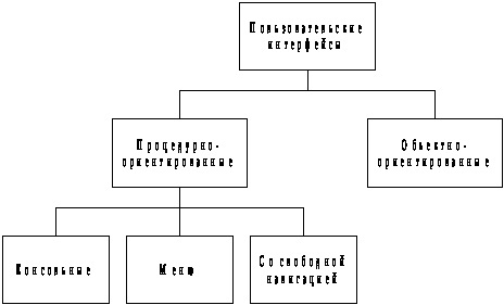 Процедурно-ориентированные интерфейсы, в свою очередь, можно разделить на несколько подтипов: консольные, меню и со свободной навигацией.