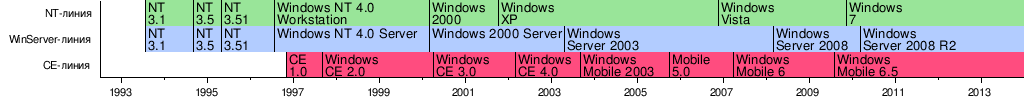 Хронология выпусков различных версий Windows выглядит следующим образом: