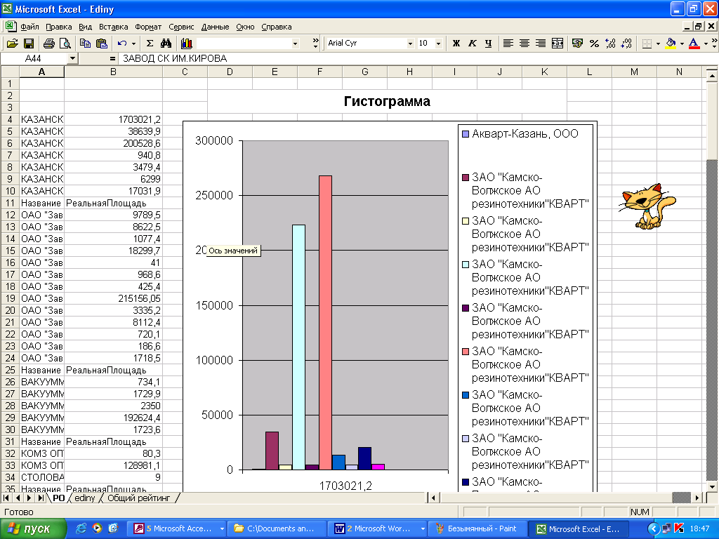 Вопрос №14. На рис. представлено окно табличного процессора MS Excel с окном табличного документа.